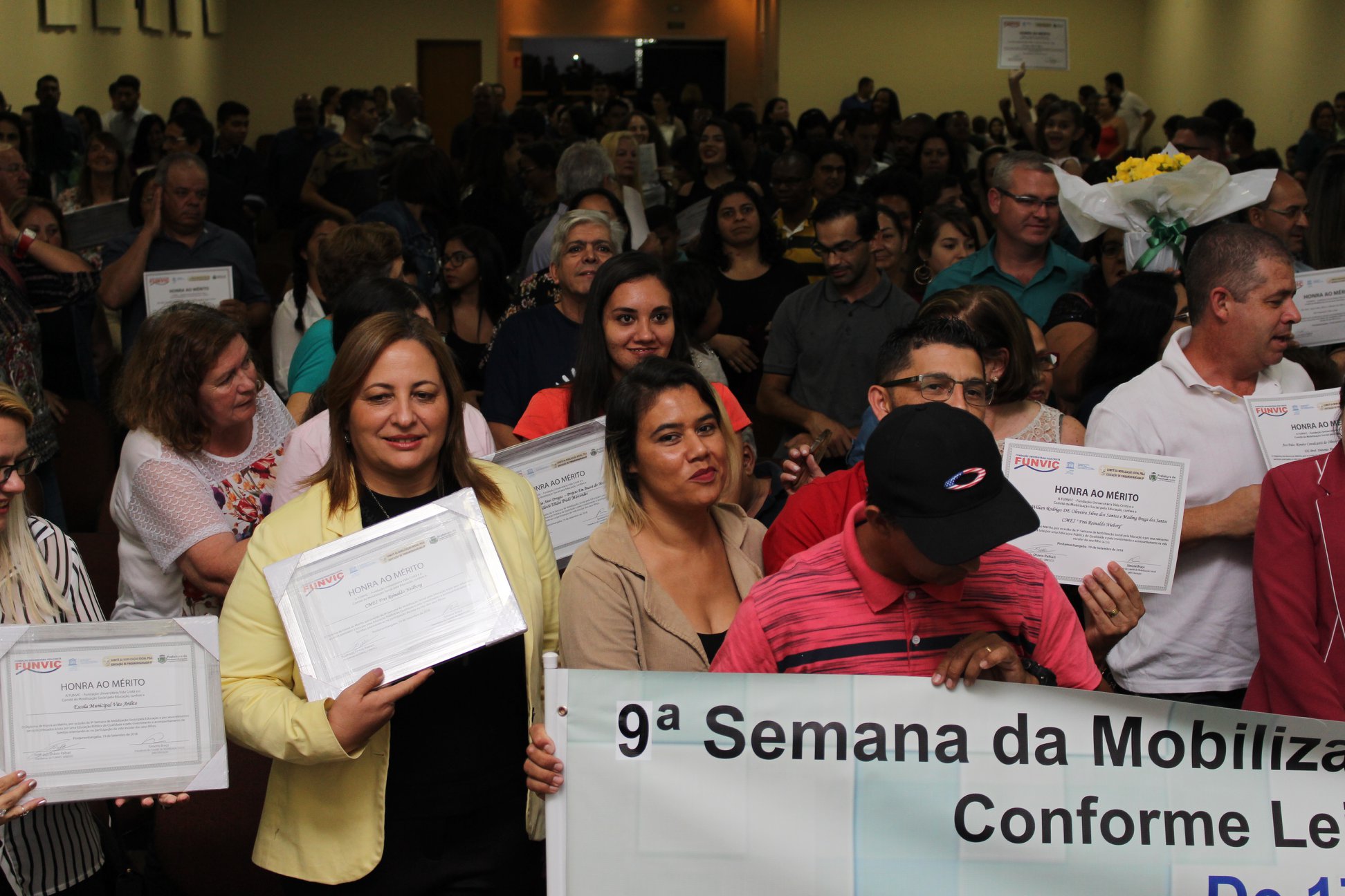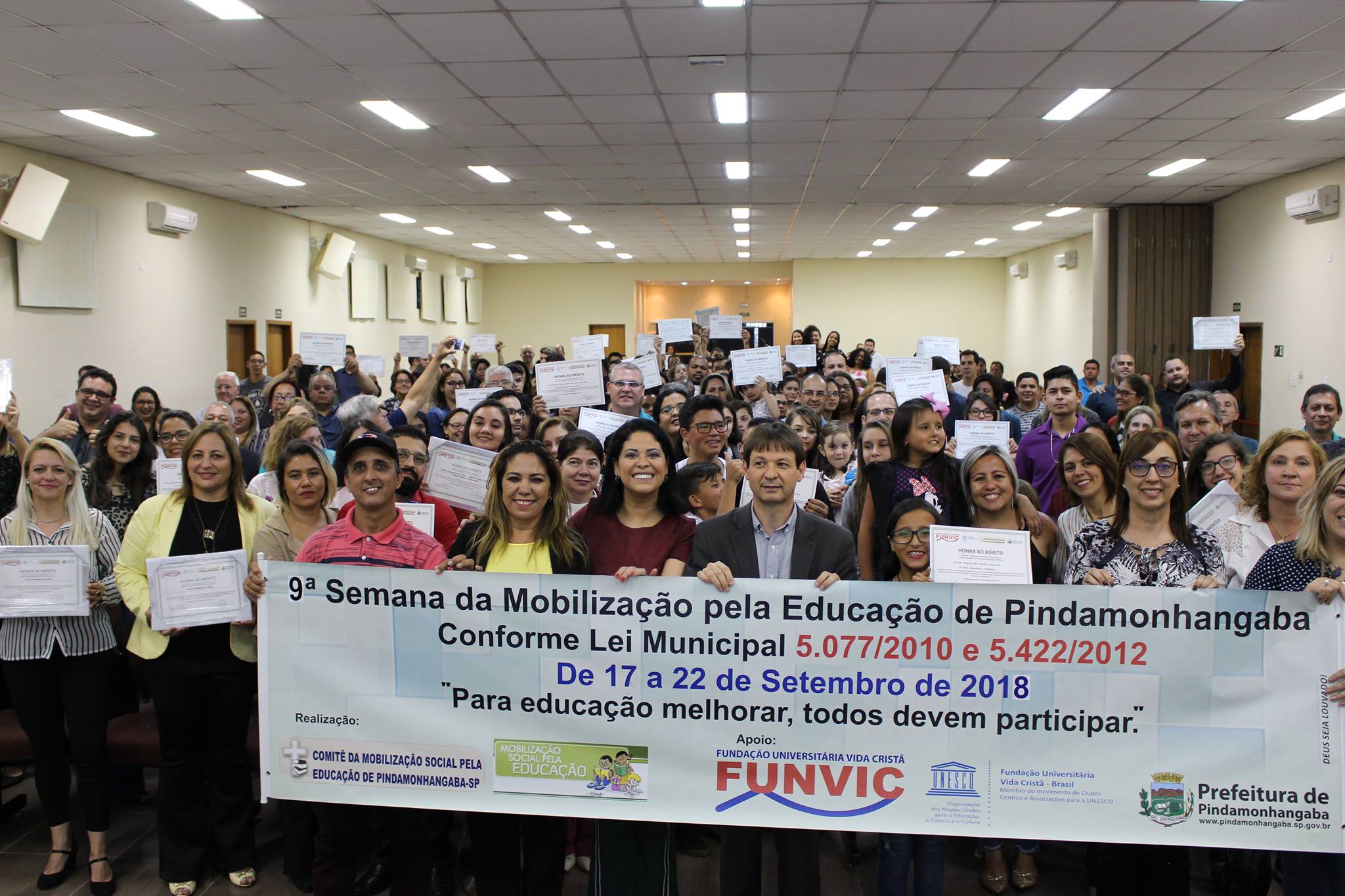 A abertura solene da 9ª Semana de Mobilização pela Educação do evento aconteceu na noite desta segunda-feira, 17 de setembro na Câmara Municipal. Na ocasião, foram homenageadas Escolas Municipais e Estaduais, e Famílias da rede estadual e Municipais que participaram ativamente na vida escolar de seus filhos, além das homenagens as Igrejas Evangélicas e ONGS da cidade de Pindamonhangaba, que trabalham com projetos que envolvem os pais de alunos em busca de uma Cultura de Paz.