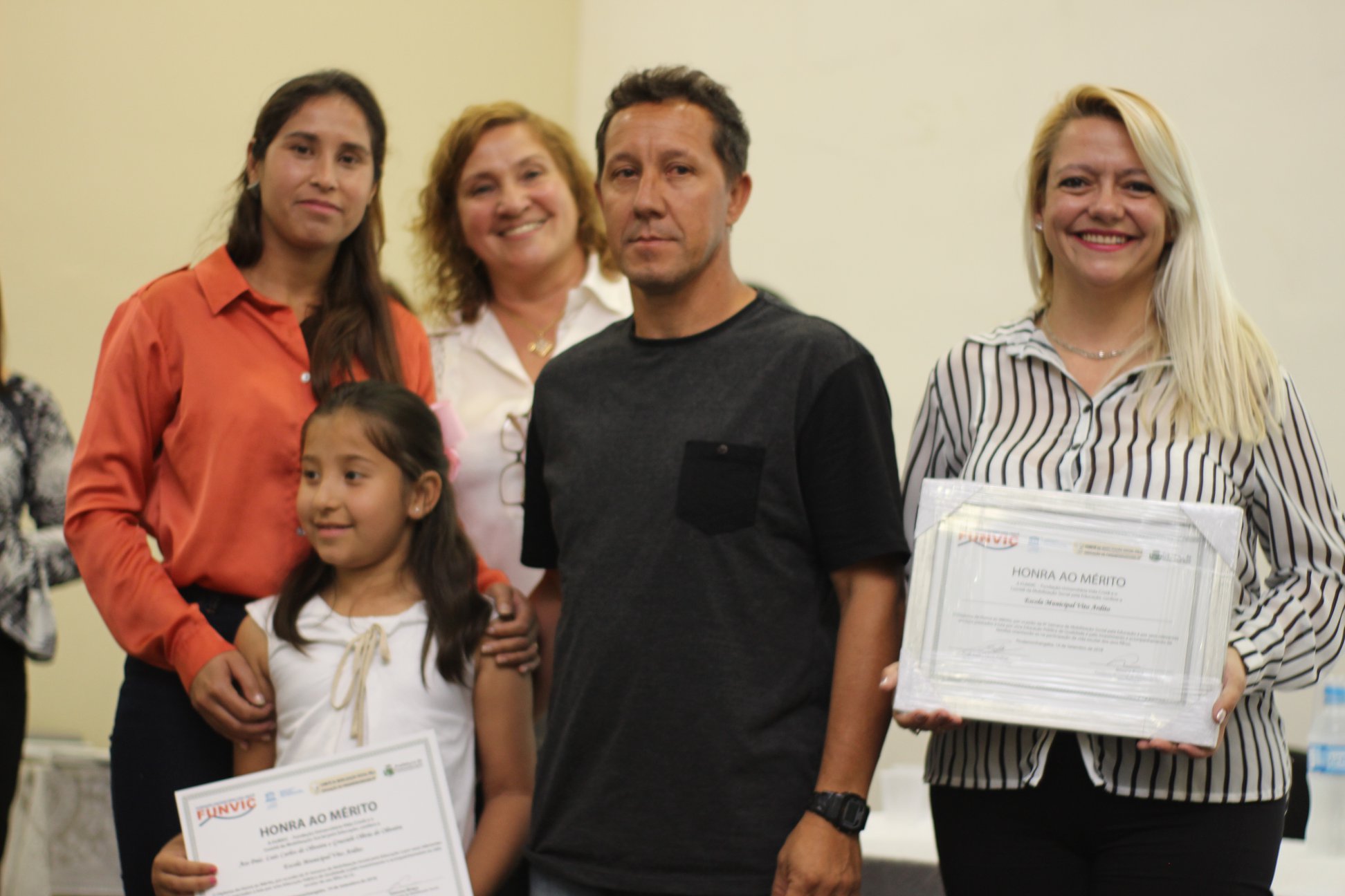 E quem marcou presença nesta homenagem foram Prof. Luis Otávio Palhari - Presidente da FUNVIC, Professora Gicele Paiva - Diretora Regional de Ensino, Professora Irene - Secretaria de Educação e a Presidente do Comitê - Simone Braça.