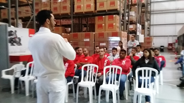 Na ocasião, eles ministraram uma palestra a convite da empresa sobre Ergonomia, que é o estudo científico das relações entre homem e máquina, visando a uma segurança e eficiência ideais no modo como um e outra interagem.