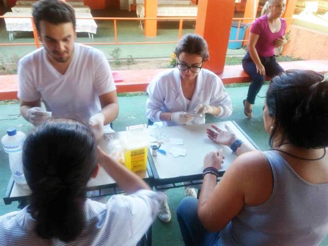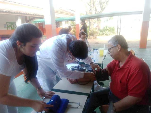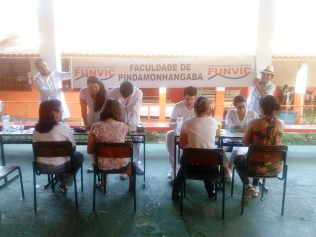 Além disso, também aferiram a pressão dos presentes e colocaram brincos em quem tivesse interesse, sempre com a supervisão dos professores do curso de Farmácia da Faculdade de Pindamonhangaba.