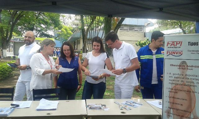 Na última semana, três alunos do 1º ano do curso de nutrição da FUNVIC, juntamente com a coordenadora do curso, Giselene Ferreira, participaram da SIPAT (Semana Interna de Prevenção a Acidentes de Trabalho) da Novelis de Pindamonhangaba. Na ocasião, eles fizeram uma orientação nutricional para os funcionários da empresa.