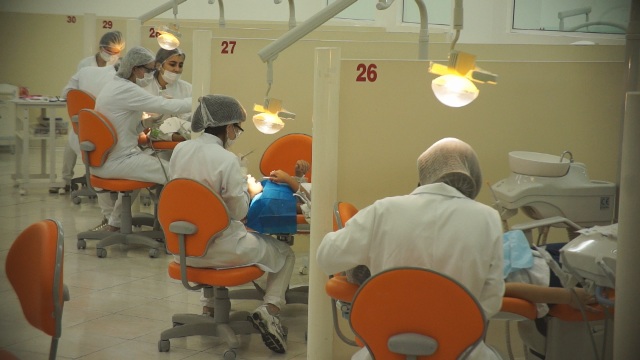 Já na parte odontológica, são realizados diagnósticos bucais, restaurações, raspagens, tratamentos de canal, próteses fixas e removíveis, cirurgias, radiografias, instalação de aparelhos, odontopediatria entre outros. Existem ainda os atendimentos de emergência que são oferecidos alguns dias da semana para os pacientes que estão sentindo dor e ainda não conseguiram sua vaga para tratamento.