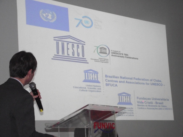 Como forma de celebrar os 70 anos da Organização das Nações Unidas e da UNESCO, completados no dia 24 de outubro, alunos e professores da FUNVIC – Fundação Universitária Vida Cristã, participaram de um evento comemorativo no dia 30 de outubro, onde foi apresentado um pouco sobre os trabalhos desenvolvidos pela ONU e UNESCO.