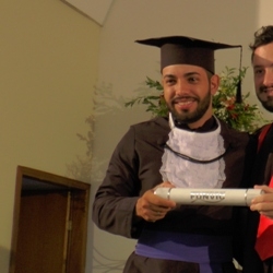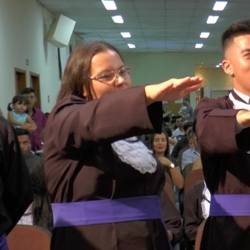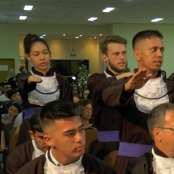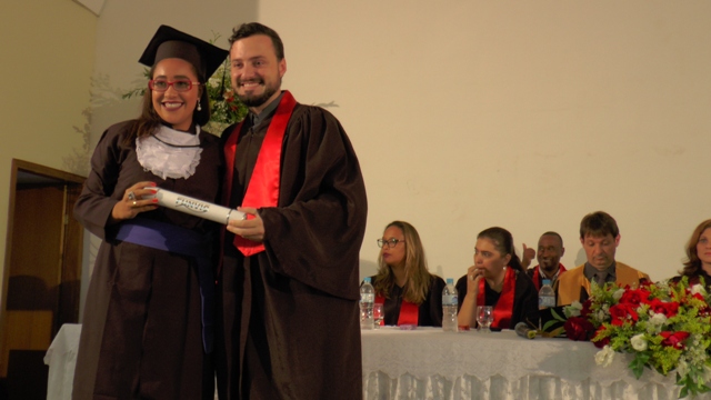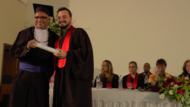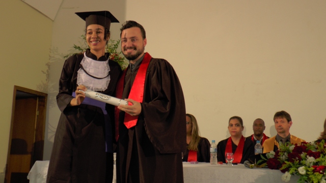 O professor, pastor e capelão universitário, Gabriel Aquino deu sequência a cerimônia, com um momento de louvor e agradecimento a Deus.