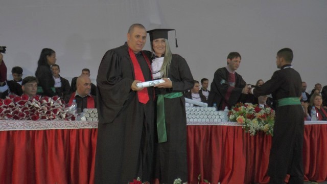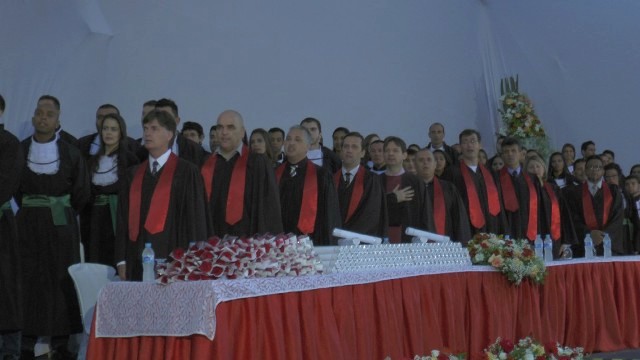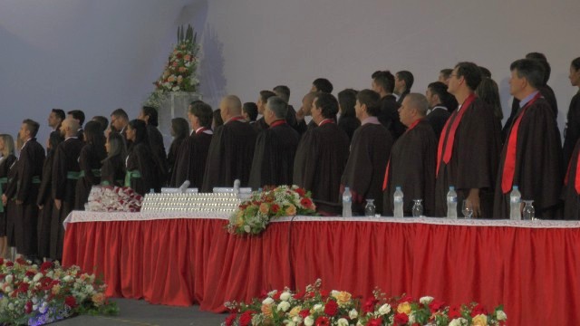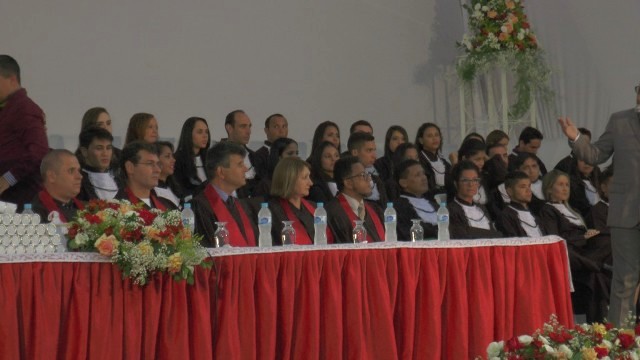 A colação de grau aconteceu para os alunos que concluíram os cursos de Educação Física, Processos Químicos, Sistemas de Informação e Tecnólogo em Automação Industrial.
