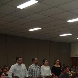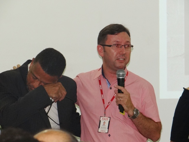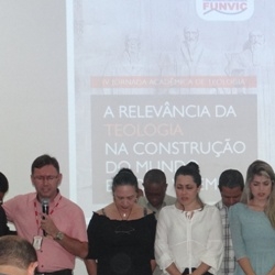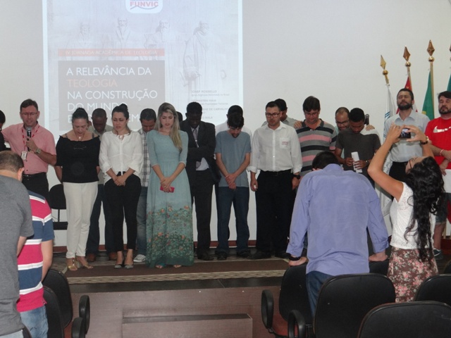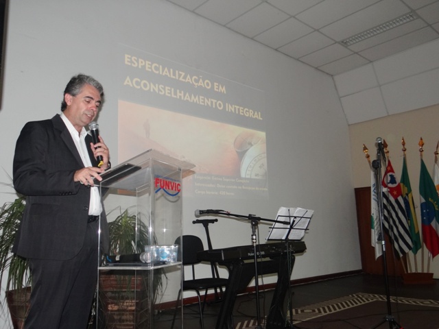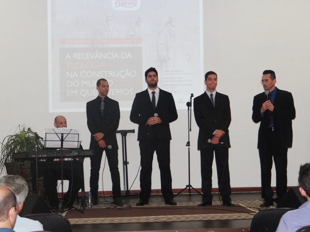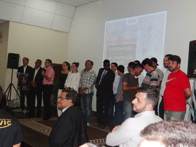 Antes da palestra, a emoção tomou conta dos participantes que acompanharam uma apresentação musical e na seqüência os alunos da primeira turma de teologia da Faculdade de Pindamonhangaba, que estão encerrando sua graduação neste ano, foram convidados a ficarem de pé para serem homenageados pelo professor pastor Ricardo Carvalho.