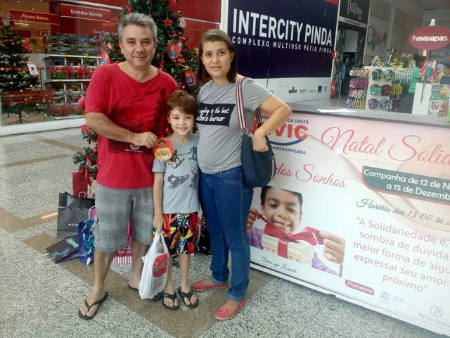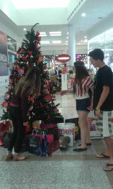 Já a “Árvore dos Sonhos”, a pessoa pode escolher uma das fotos de crianças que estão penduradas na árvore e fazer o cadastro, se comprometendo em doar um KIT com roupa, calçado, brinquedo e caixa de bombom.