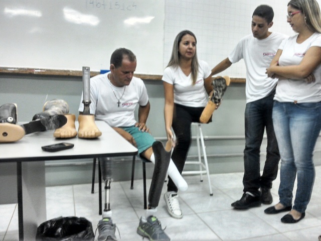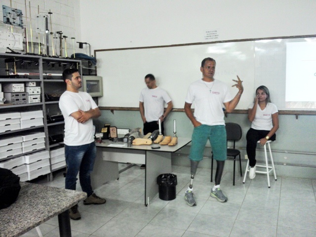 Um dos grupos, cujos integrantes são André Luís, Charles Novais, Cristiane Aparecida Andrade da Silva, Gabriel Cesar Leite, Jéssica Cristina Claro dos Santos e Renato Cesar Nogueira do Rozario, encontrou na deficiência física a motivação para explorar a Física envolvida na construção de próteses, especialmente das próteses utilizadas por atletas de alto desempenho. A aluna Jéssica possui deficiência física, pois perdeu uma das pernas em um acidente de moto. Sob orientação do docente, os alunos exploraram as forças aplicadas nas próteses, o princípio de conservação da energia mecânica, a resistência dos materiais utilizados na sua construção e a análise da estrutura corporal do atleta para que a prótese tenha o tamanho exato e necessário para se adequar ao centro de gravidade do esportista.