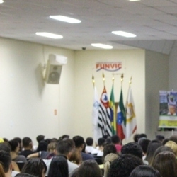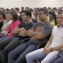 Como de costume, Luís Otávio apresentou aos estudantes que ingressaram este ano na Faculdade de Pindamonhangaba as regras, missão, visão e valores da FUNVIC, assim como os futuros projetos e outros assuntos.