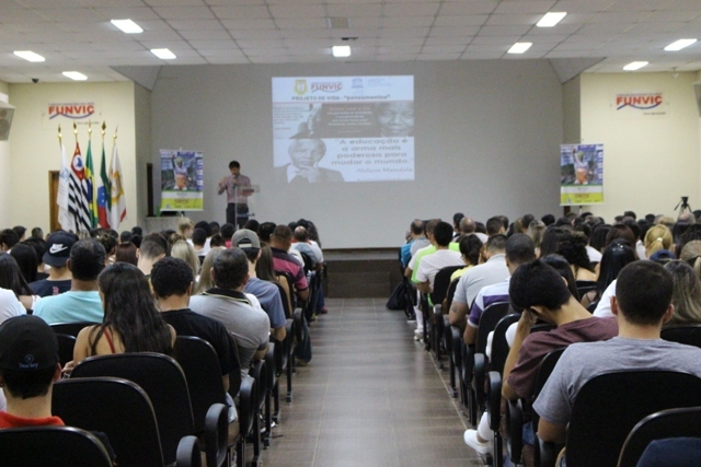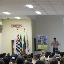 Durante a palestra, o presidente da FUNVIC ressaltou a preocupação da faculdade em formar seres humanos, capazes de transformar vidas e sociedades. Cada participante foi presenteado com uma bíblia.