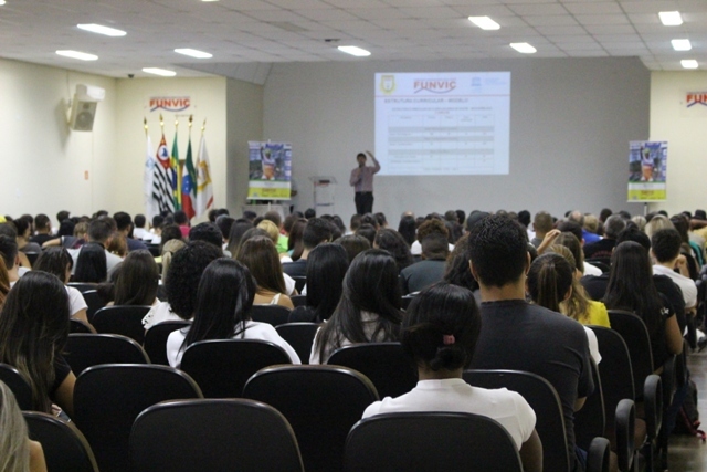 Os novos alunos da FUNVIC tiveram, na noite desta quinta-feira, 09 de fevereiro, uma aula inaugural ministrada pelo presidente da instituição de ensino, Professor Luís Otávio Palhari.