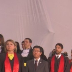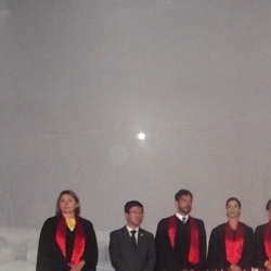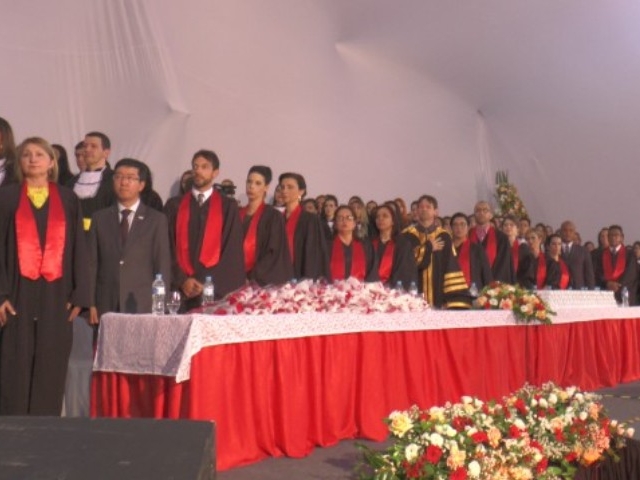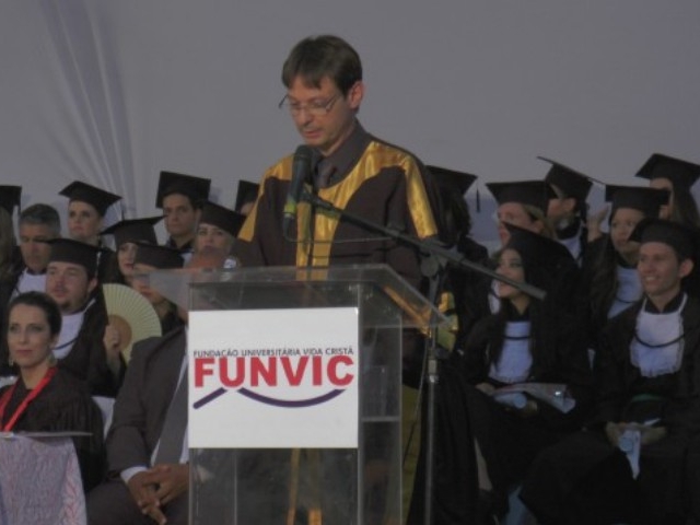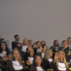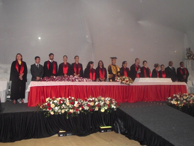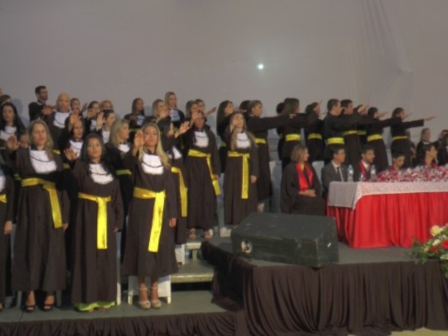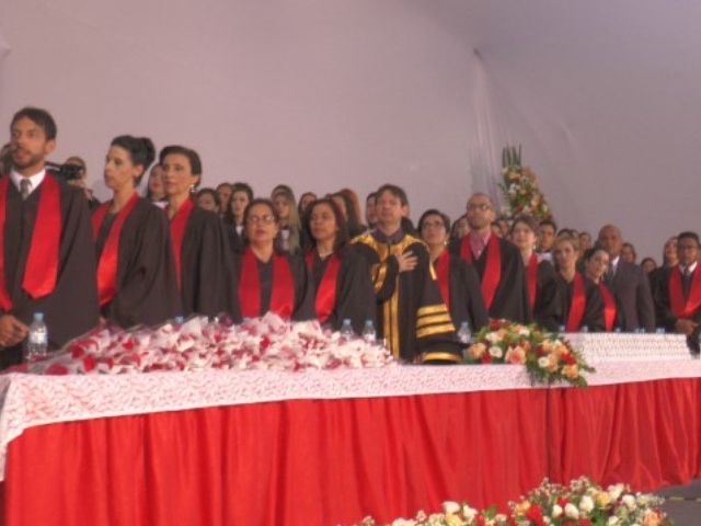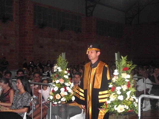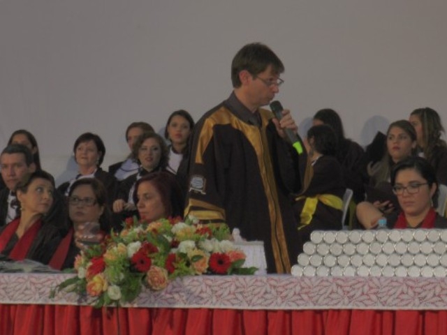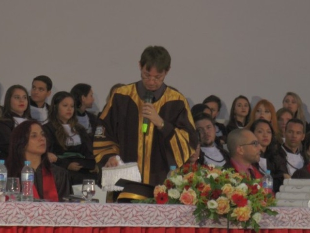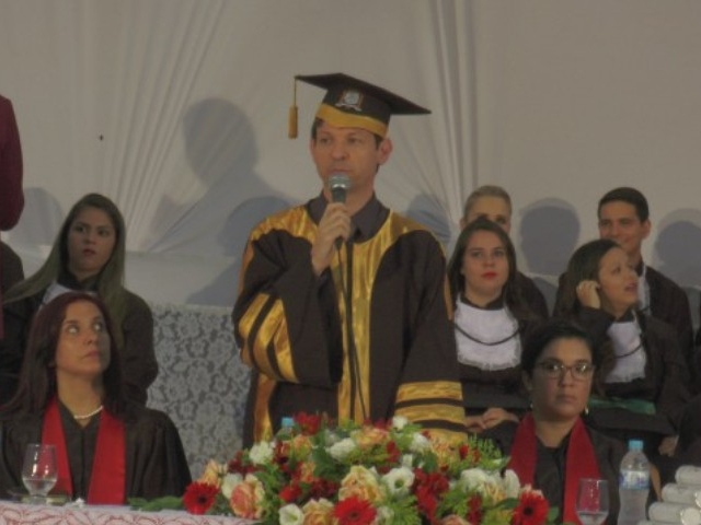 Antes de dar início à solenidade, todos foram convidados a ficar em posição de respeito para cantar o Hino Nacional. Depois, o capelão da faculdade, professor Gabriel Aquino deu uma palavra de fé em agradecimento a Deus e na sequência, o presidente da instituição de ensino, Luís Otávio Palhari declarou aberta a sessão de formatura.