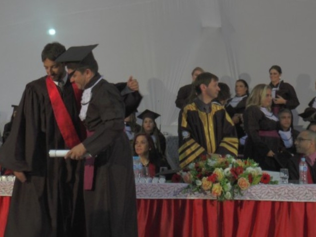 Após a outorga do grau, o presidente da Faculdade de Pindamonhangaba, professor Luís Otávio Palhari colocou o capelo na cabeça dos formandos, como representação simbólica do grau obtido.