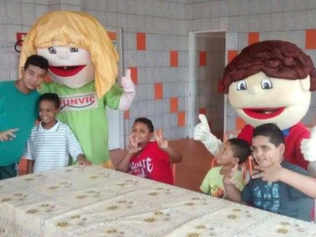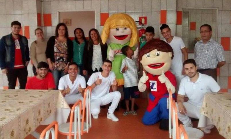 Os universitários tiveram a oportunidade de conhecer um pouco as instalações da casa e, além disso, juntamente com os mascotes da FUNVIC, levaram diversão e alegria aos pequenos.